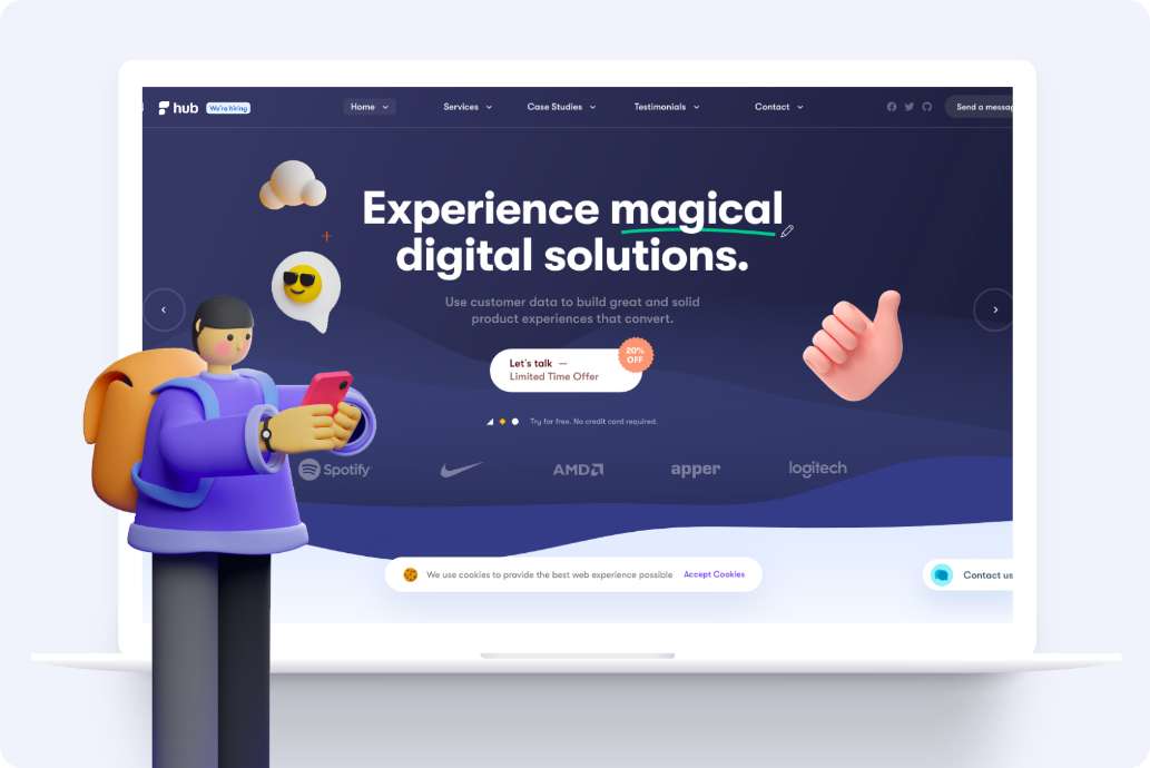 We’re introducing 4 new ready-to-use demos created by our professional designers. These modern designs are organized into complete site packs that you can import with a single click and jump-start your design process. And yeah, they’re all free for Hub users!