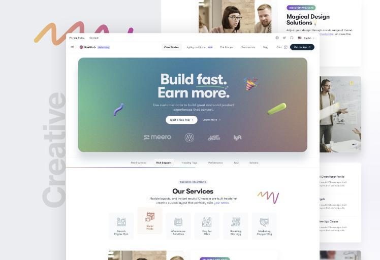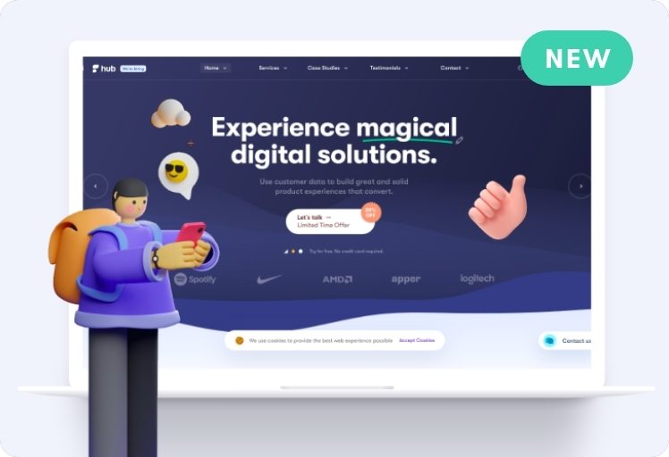 Engage your visitors and leave a lasting impression with Hub’s exclusive elements. From stunning animations and interactive sliders to dynamic portfolios and captivating call-to-action sections, these features will elevate your website’s visual appeal and keep your audience hooked.